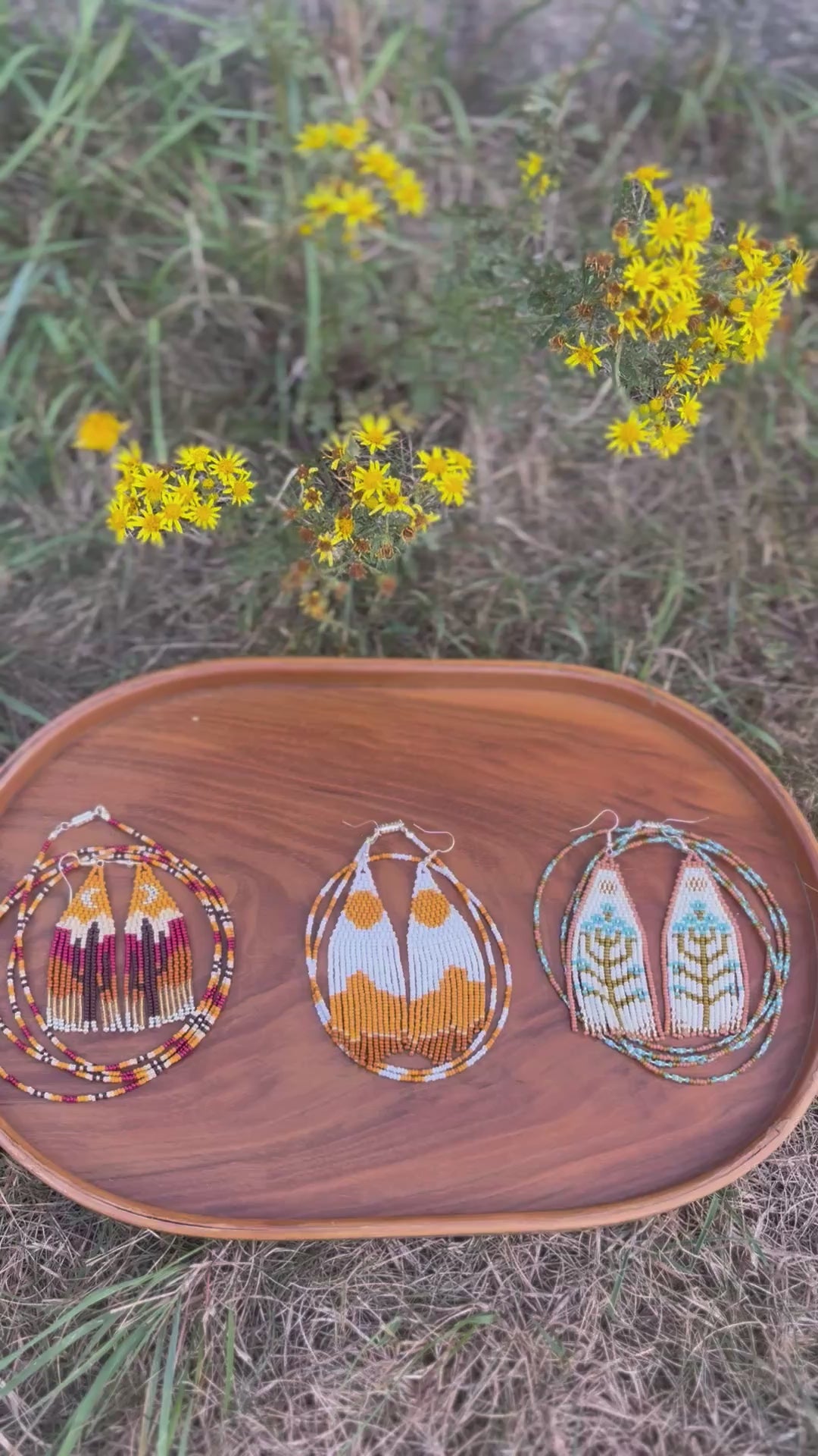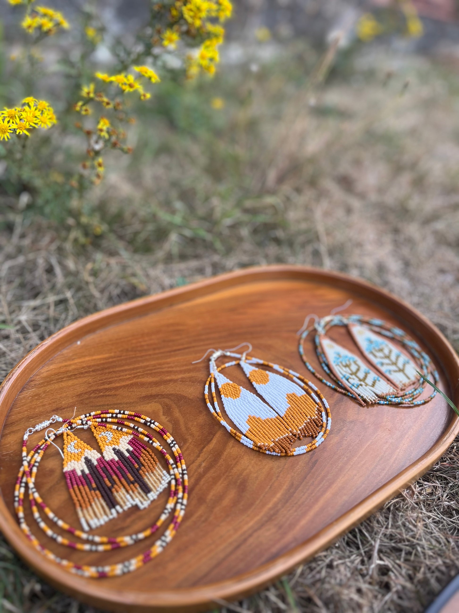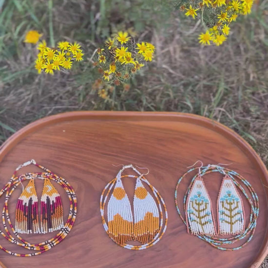 Glass seed beads and silver tone findings.